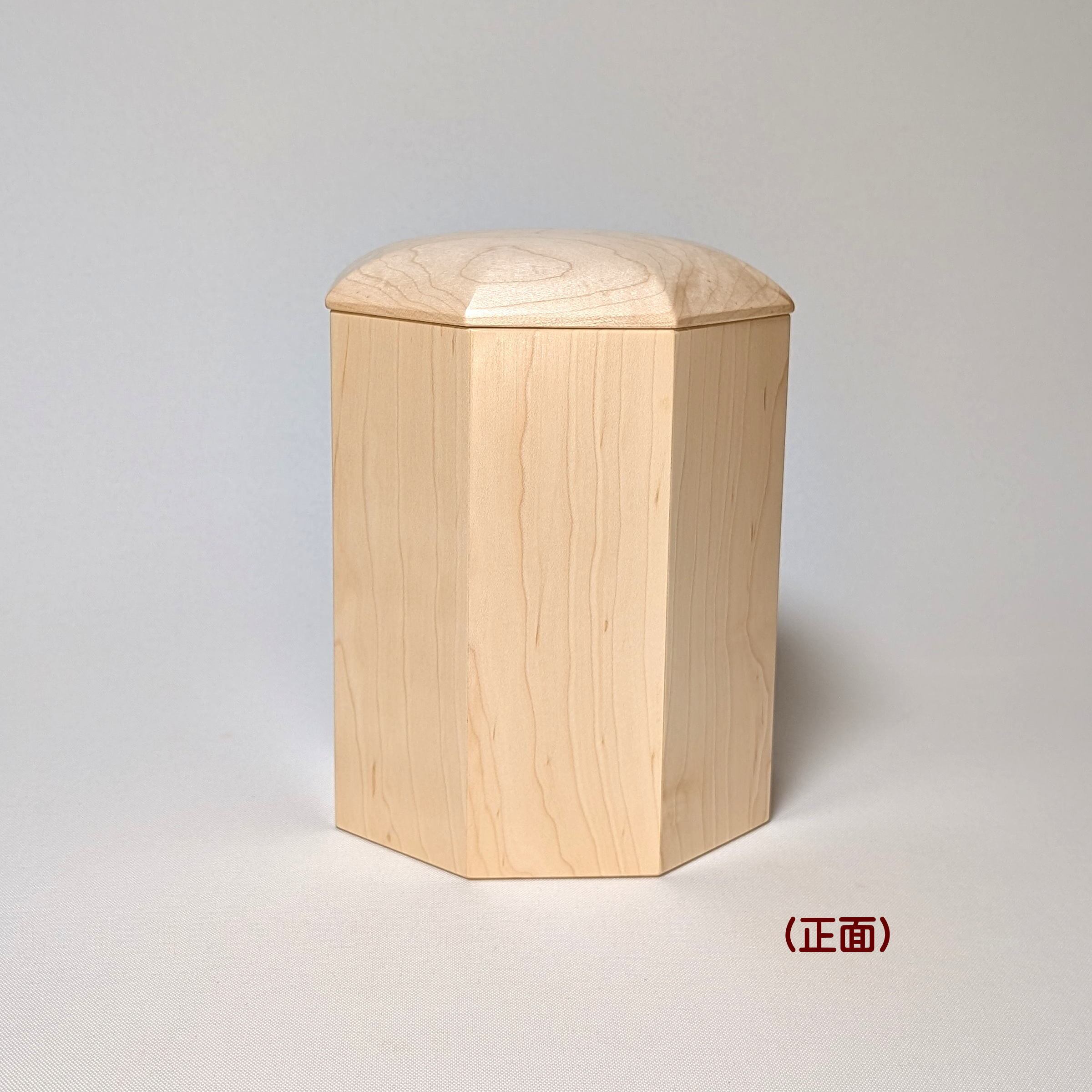 無垢の木の木目や優しい色合い、8角形の本体とRの蓋のシンプルな形がどんなインテリアにも調和します。これからも家族が集う場所で共にゆったり・安らかに過ごしてほしい、という気持ちで製作しています。