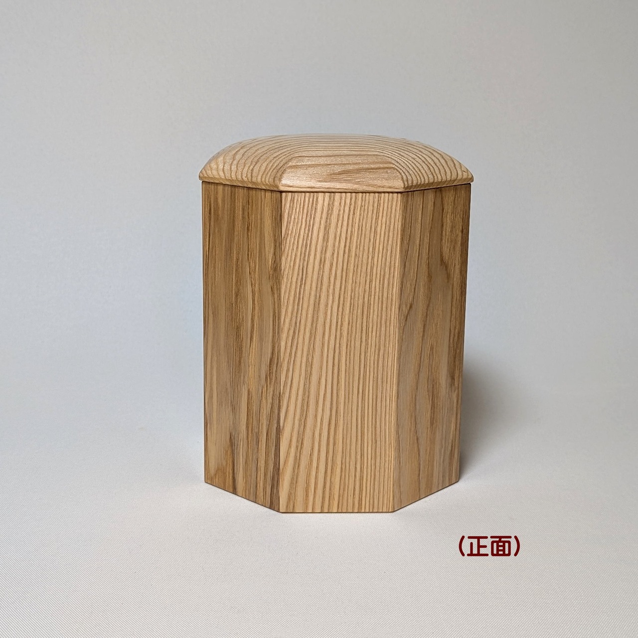 無垢の木の木目や優しい色合い、8角形の本体とRの蓋のシンプルな形がどんなインテリアにも調和します。これからも家族が集う場所で共にゆったり・安らかに過ごしてほしい、という気持ちで製作しています。