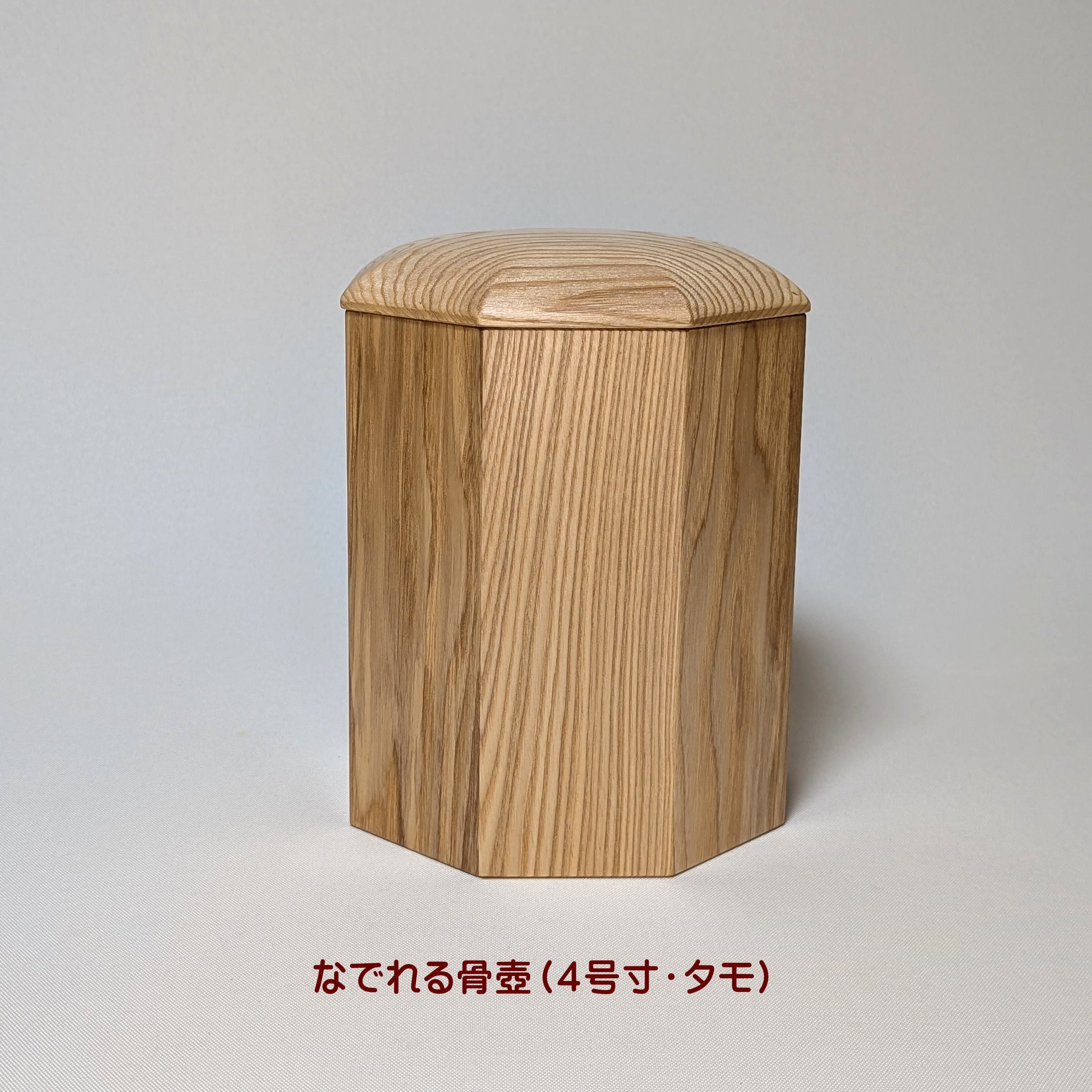 なでれる骨壺「なでつぼ」は、亡くなった愛犬・愛猫の骨壺を納めるための木製骨壺ケースです。手鉋でRに削られた蓋は生前の我が子を撫でている時のように滑らかで優しい触り心地になっています。