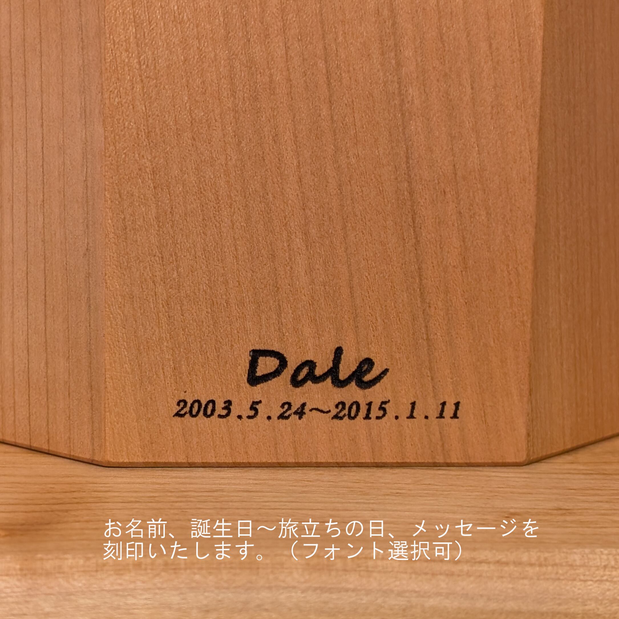 刻印:名前、誕生日~旅立ちの日などのメッセージを刻印します。(別途メールで打合せ)