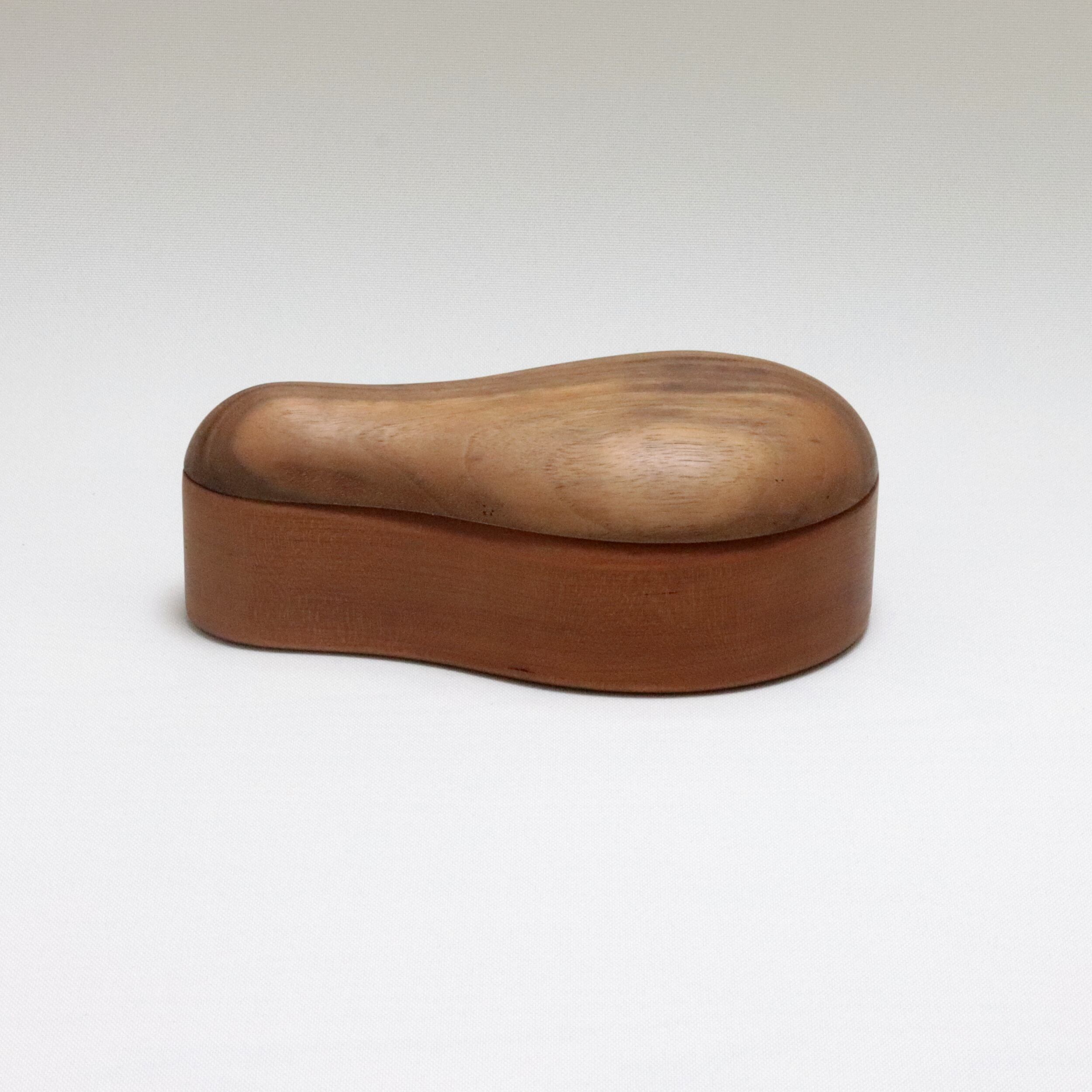 木の塊から作った豆型の小箱「ビーンズ」。柔らかい曲線が手になじみむ小物入れです。