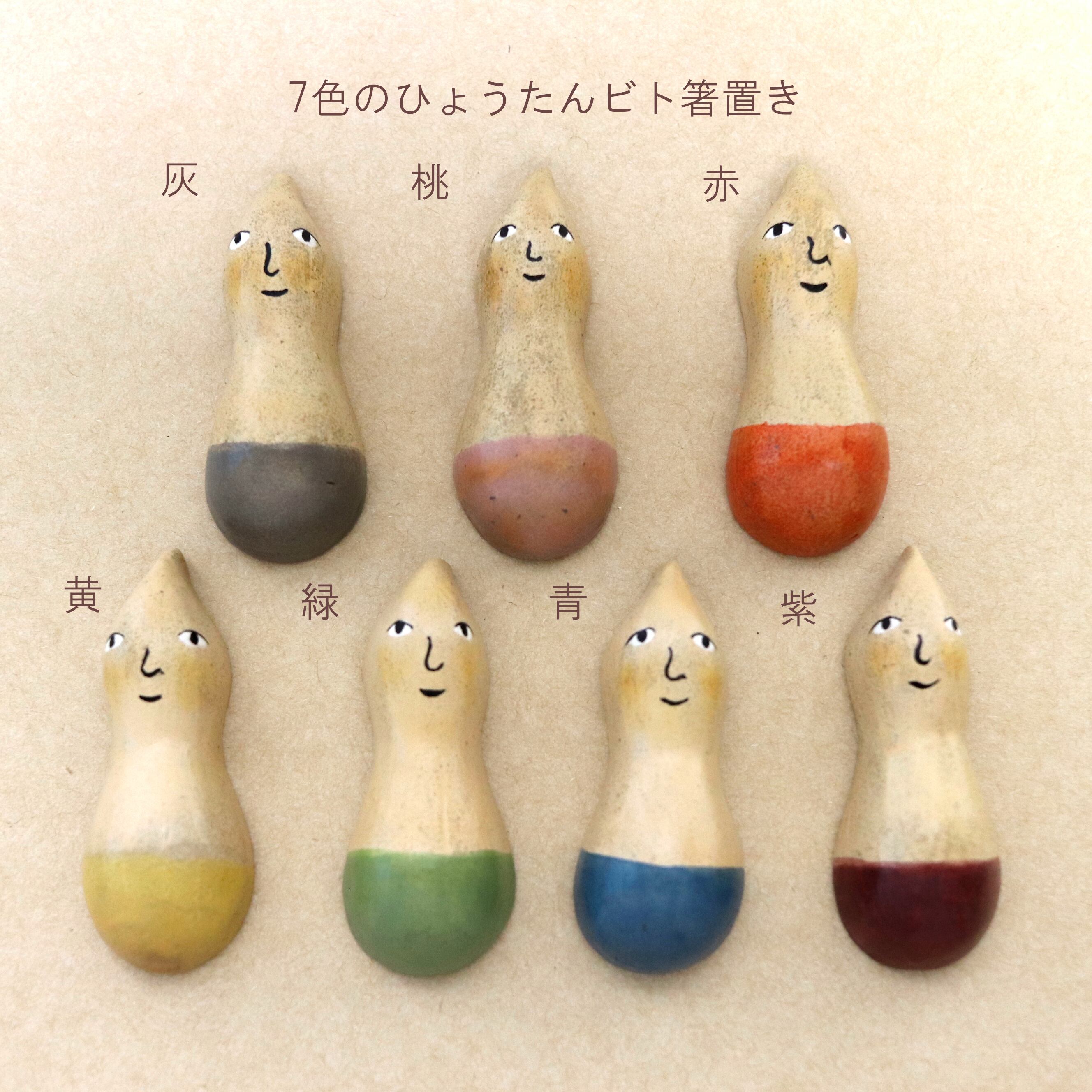 ひょうたんビトの箸置き×5人セット。7色の中から好きな組み合わせで色を5種類選べます。