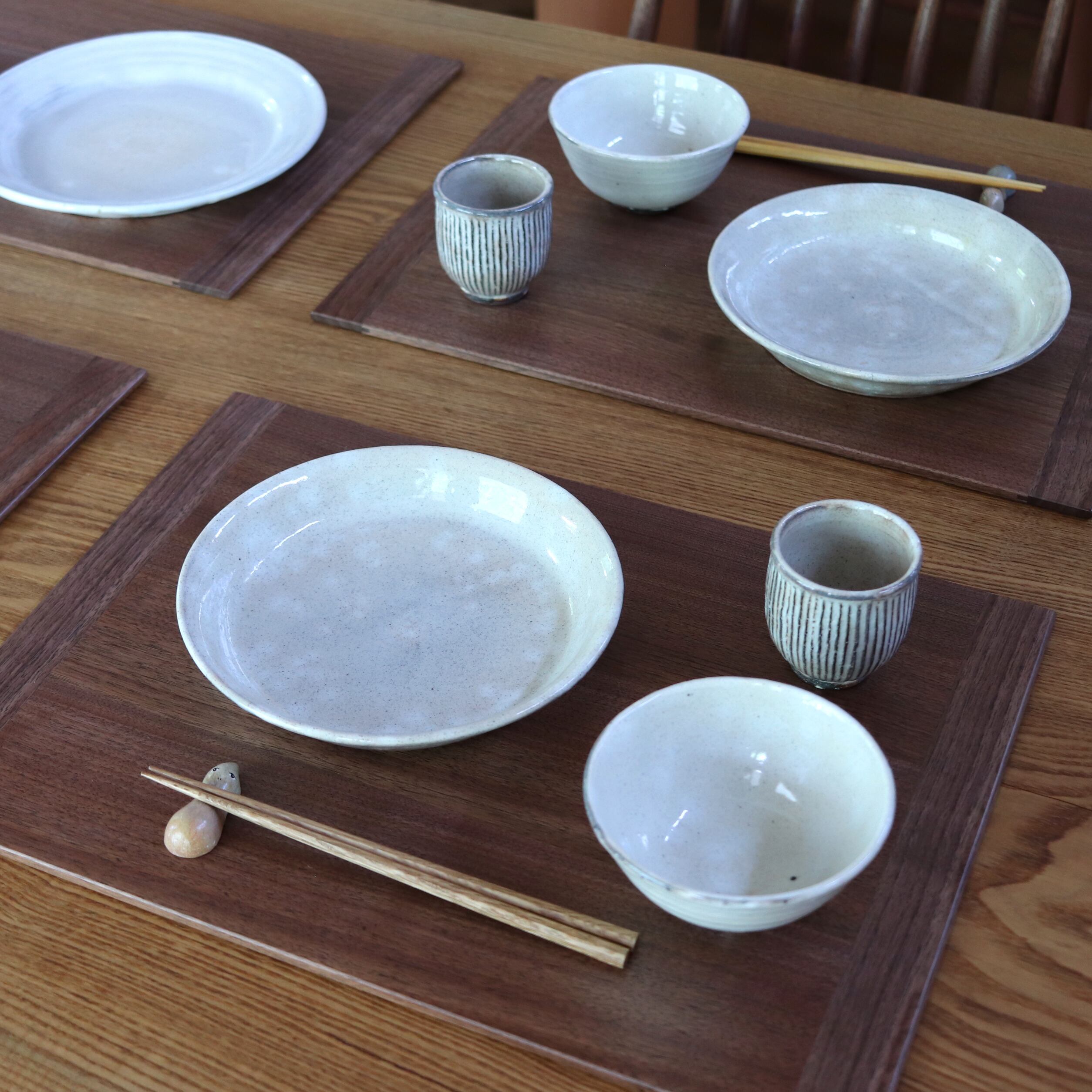 ウォールナット無垢材の木製ランチョンマット。ウォールナットの色味や木目の美しさを引き出した仕上がりになっています。手作りの温かさを感じさせる木の風合いは、食卓をやさしく見せてくれます。