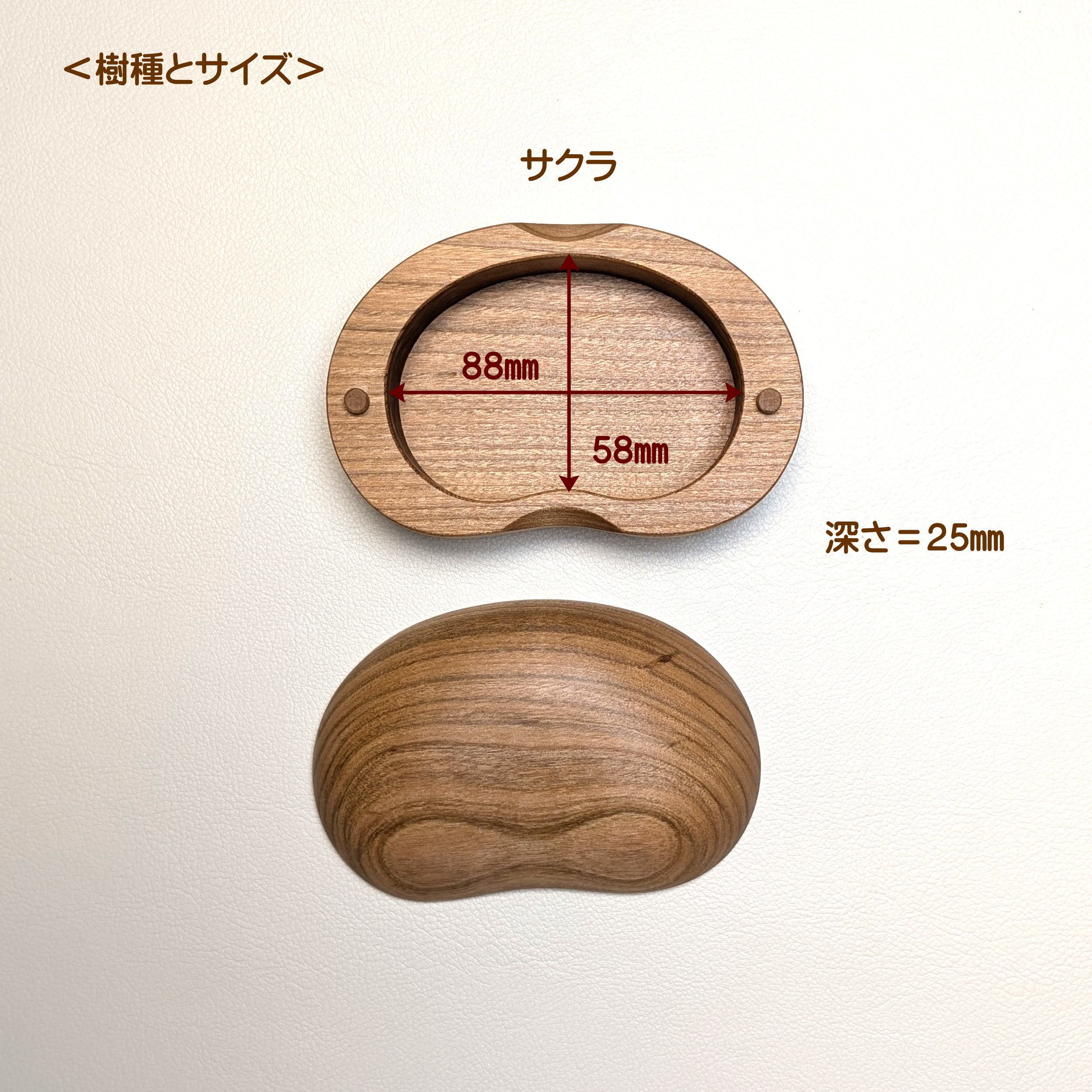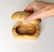 木の塊から作った豆型の小箱。柔らかい曲線が手になじみむ小物入れです。